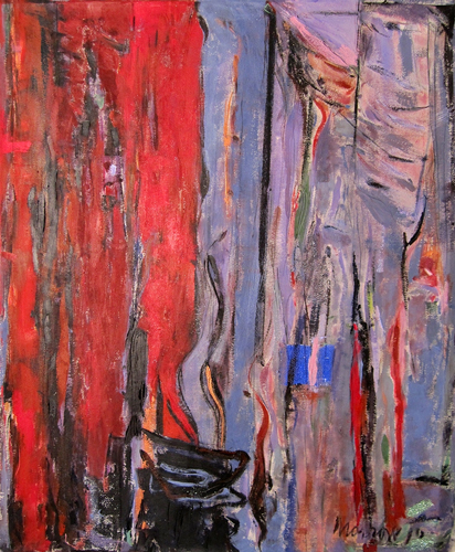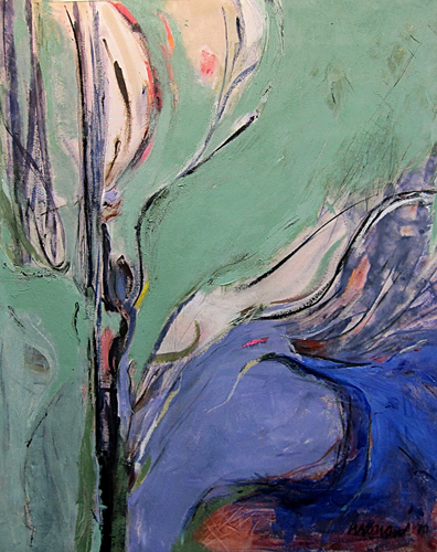 Installation in lobby of corporate headquarters: a suite of five paintings, 50 x 40 inches each, mixed media on canvas.