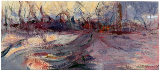 << “Canal Mystery” 2007. Mixed media on canvas 10 x 24 inches