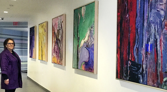 Installation in lobby of corporate headquarters: a suite of five paintings, 50 x 40 inches each, mixed media on canvas.